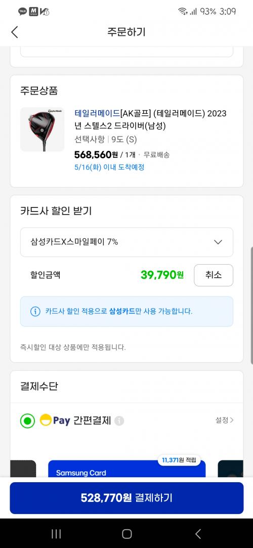 저는 지마켓에서 안되서 옥션가서 하니 일반 삼성카드 스마일페이 연결해서 구입했습니다. | ||