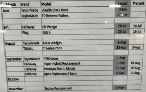 인스타그램 @slade_golf에 올라온 여름/가을 신제품 출시 일정입니다. 미국 기준이지만 한국도 크게 다르지 않겠죠?