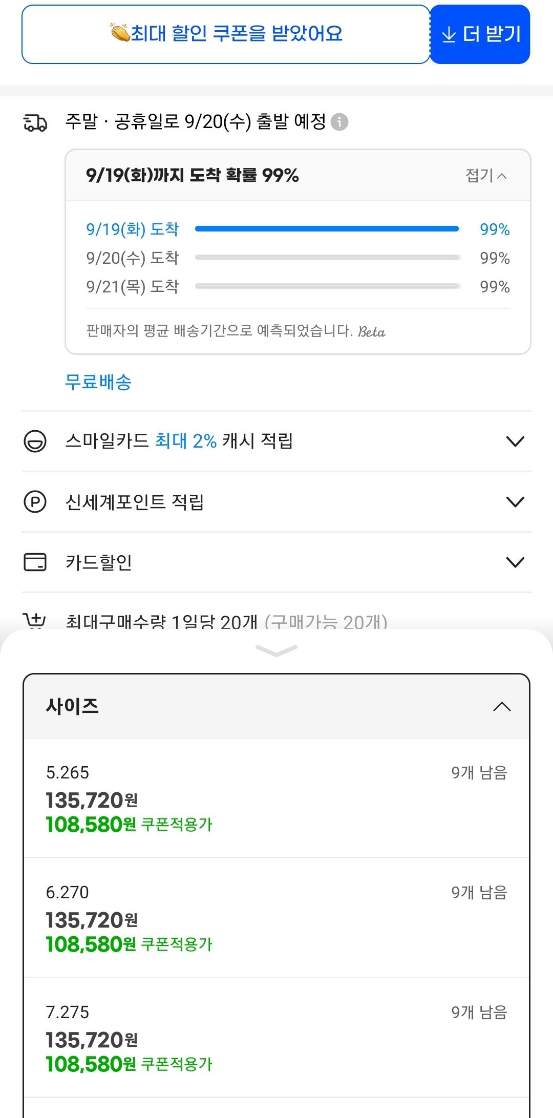 어제부터 사이즈가 보일뿐 주문시 재고부족으로 넘어가지 않았습니다.