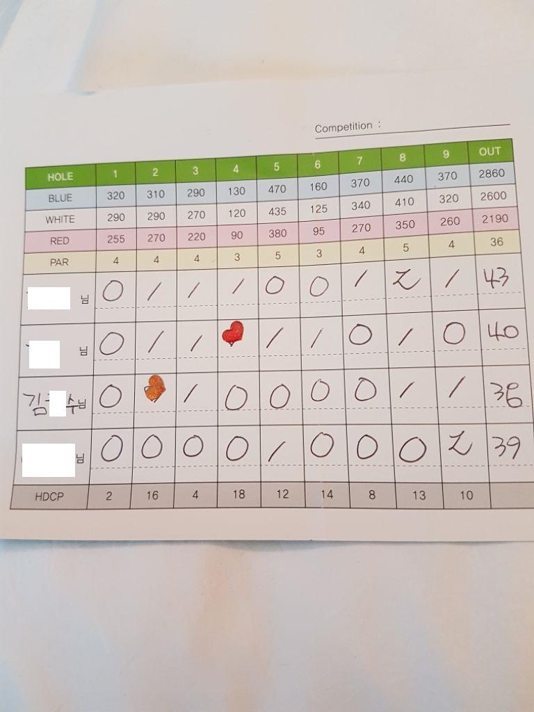 매 홀 끝나고 몇타인지 자동으로 기록되는 것 같으나 정확하진 않습니다 캐디가 적어주기때문에 굳이 수정하지 않았습니다