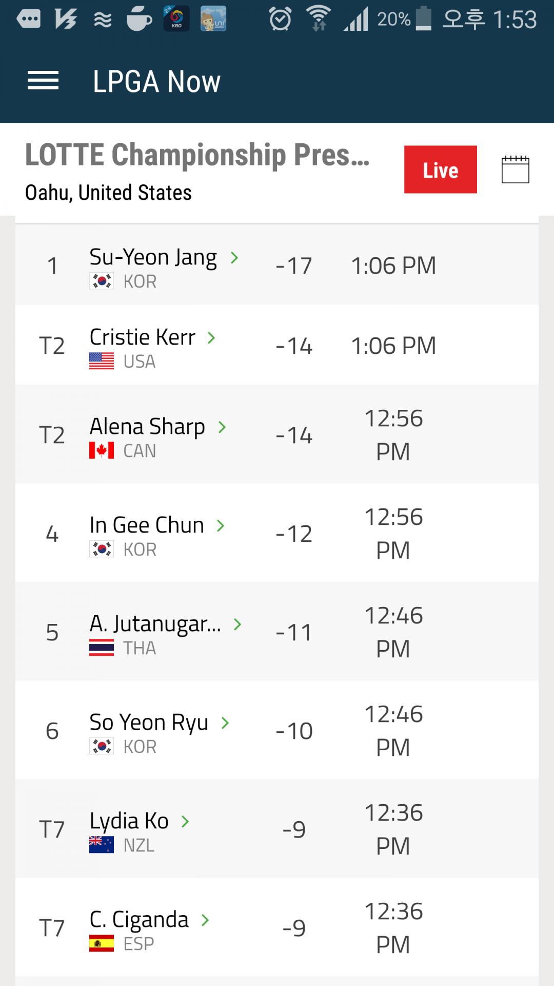 류소연이 리디아고에 0.91 포인트차이인데 현재 -10 으로 6위입니다. 리디아고에 한층 더 추격이 될거라 봤는데