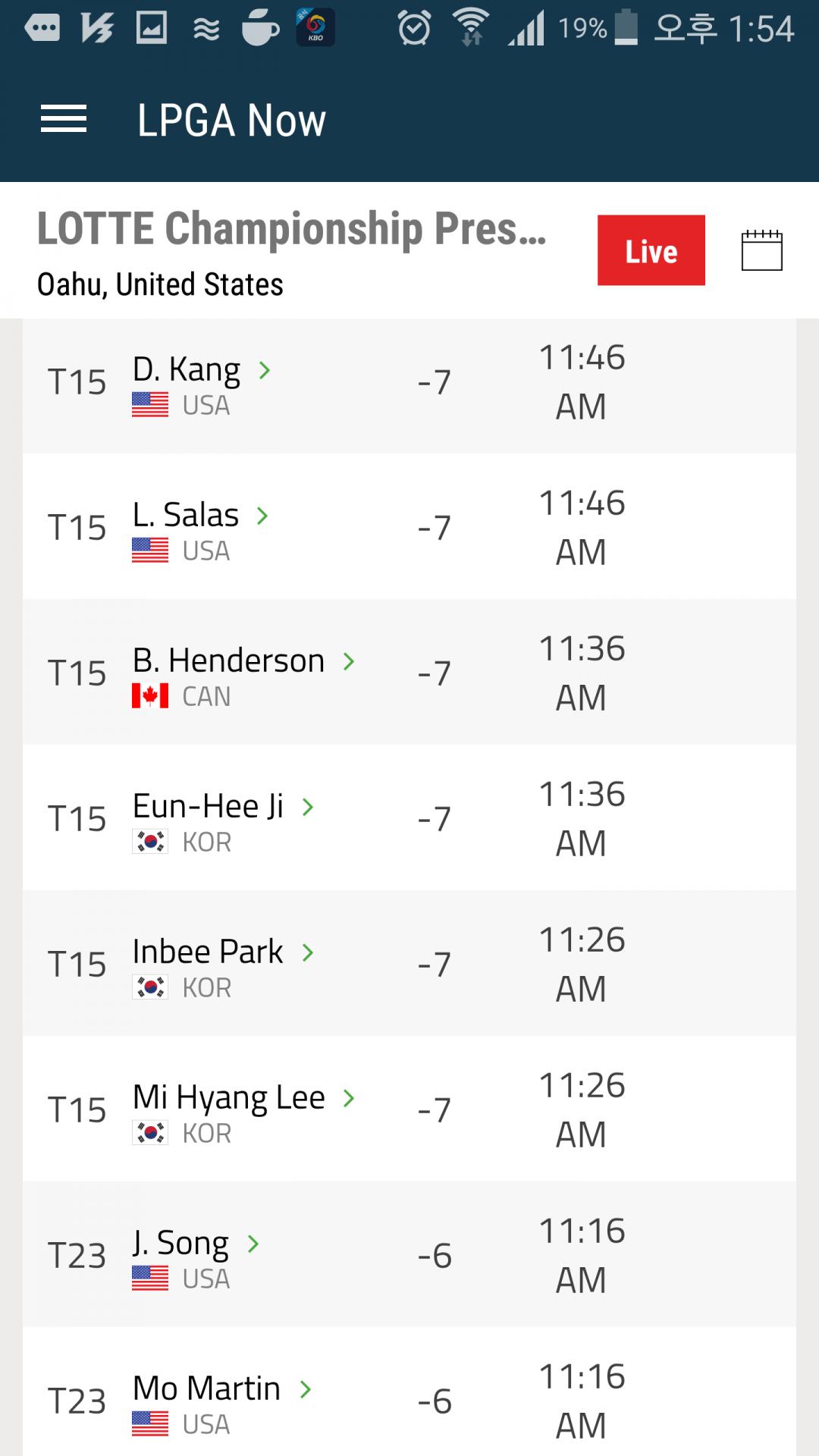 1위 크리스티커와 3타 차이...lpga경험이 부족해서 아직 안정권이라고 보기는 뭐하지만