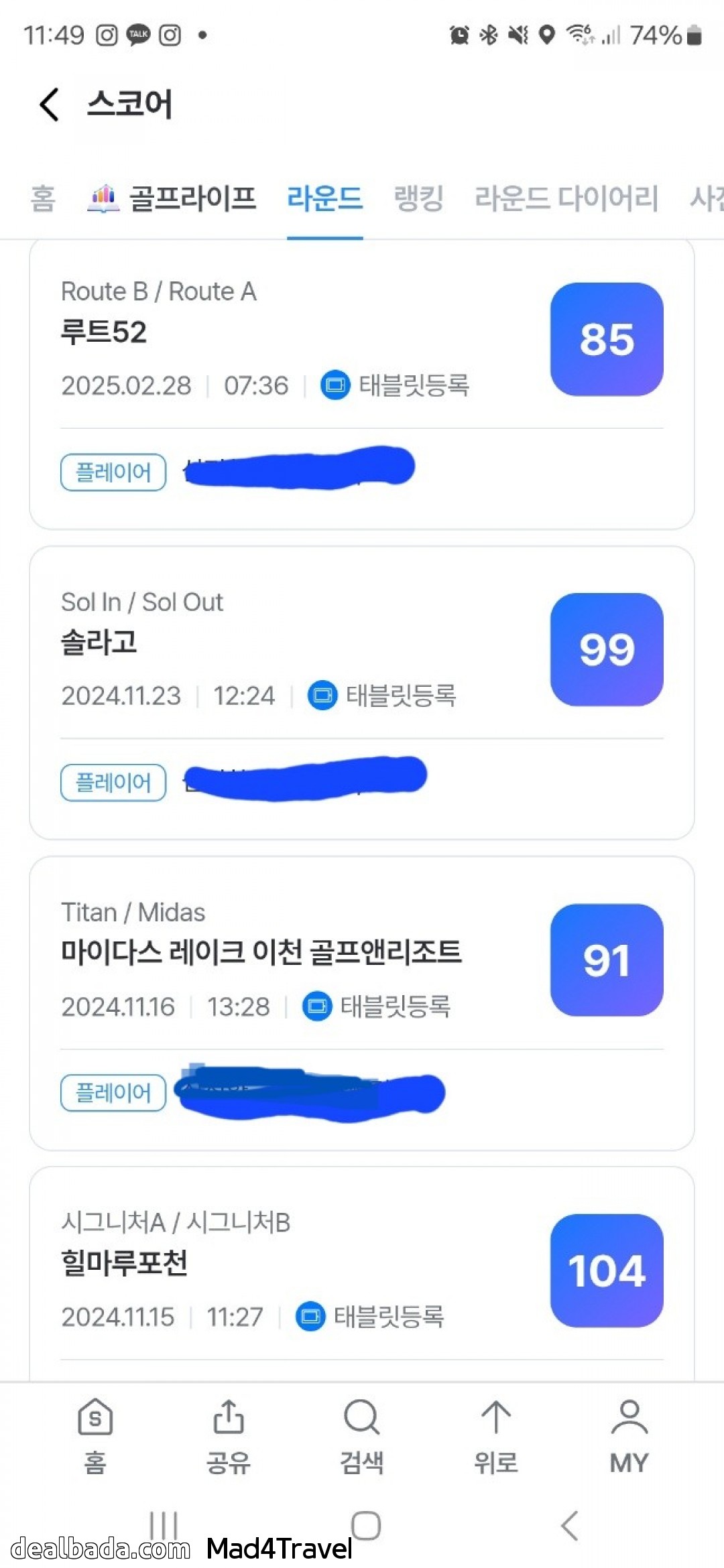 첫 머리올린게 23년4월이니 약 2년만에 첨으로 깨90 해봤네요 ㅎㅎ.. 맨날90중반~100사이 왔다갔다 갑자기 점프를 해서 8자만 달아도 기분이 좋은데 70대 치시는 분들은 어떤 기분일까 상상도 안가네요 ㅎㅎ