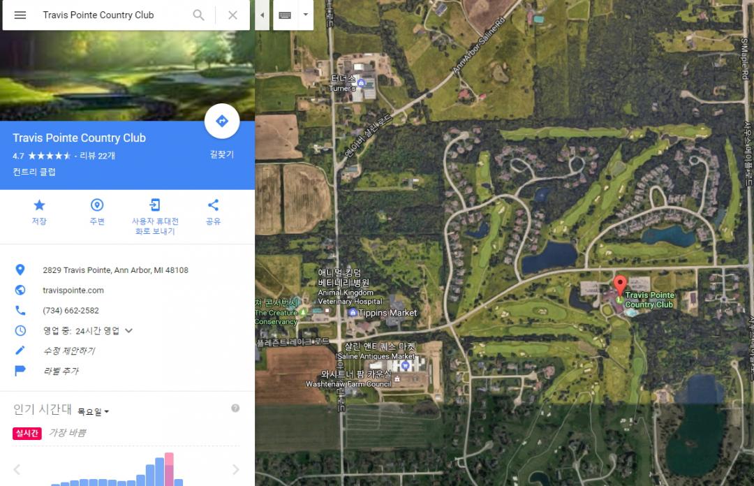 경기를 진행하고 있는 Travis Pointe Country Club은 미시건주에 있네요.