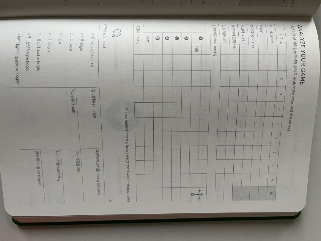 저도 받았는데 솔직히 말하면 쓸모가 없어보여요. 라운드 도중에는 절대 못들고 다닐 크기인데... 끝나고 나면 샷 하나하나 생각도 안날텐데요. |