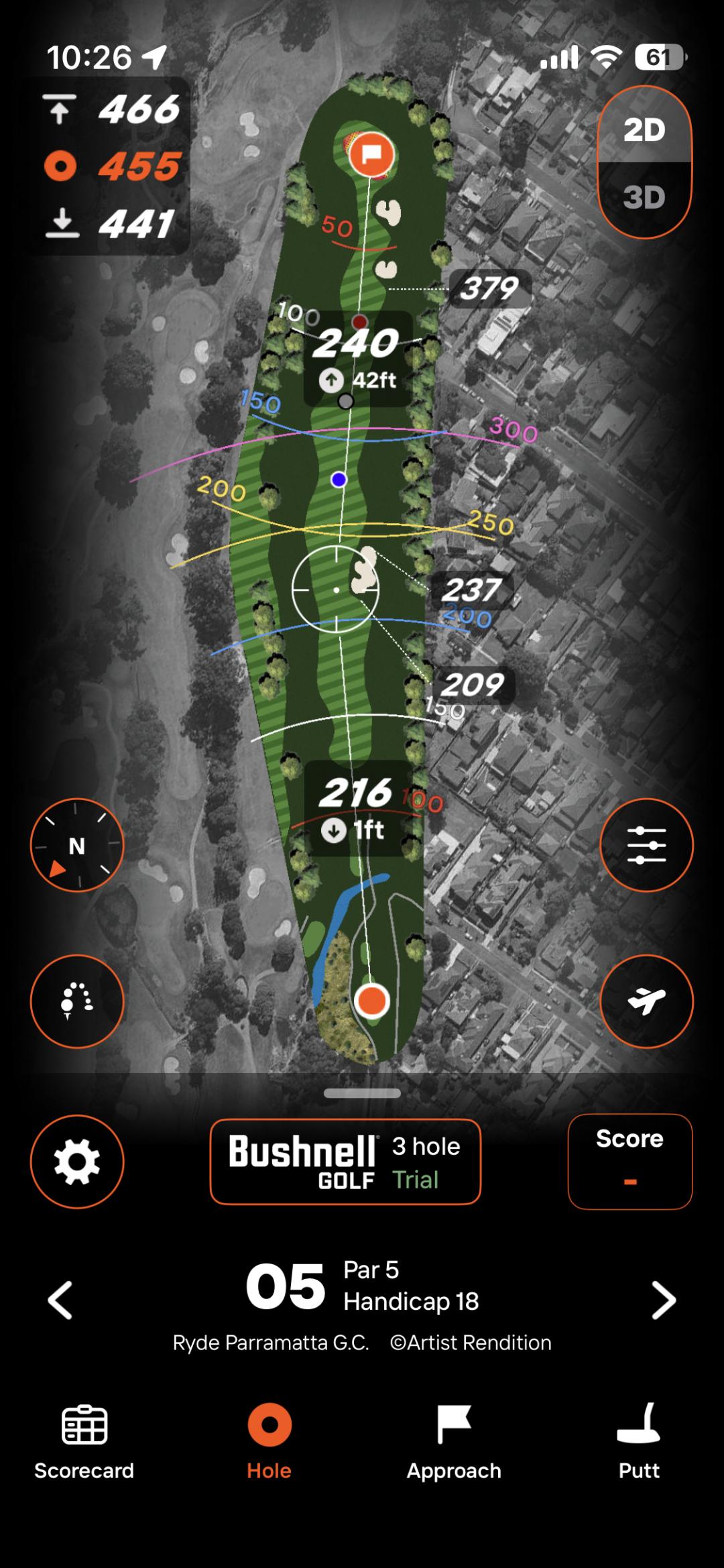 티샷이 215 정도 잘 나갔고, 세컨샷을 3번 우드로 쳐서 우측 벙커 전에 떨어뜨렸어요. 힘빼고 방향성에 중점을 두고 쳤었네요.