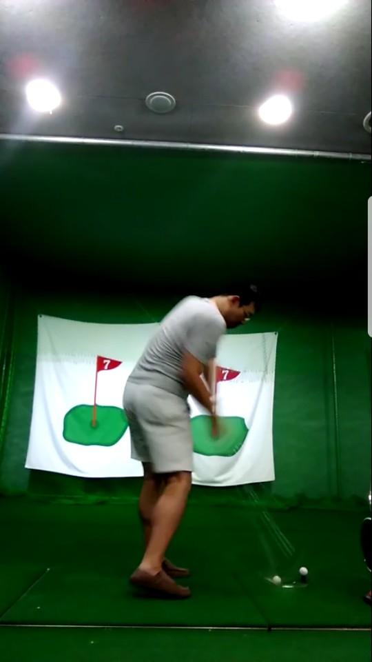 프로님이 볼때 다운스윙이 내려올때 몸이 말려들어가는 꼬임이 너무 부족하다십니다.