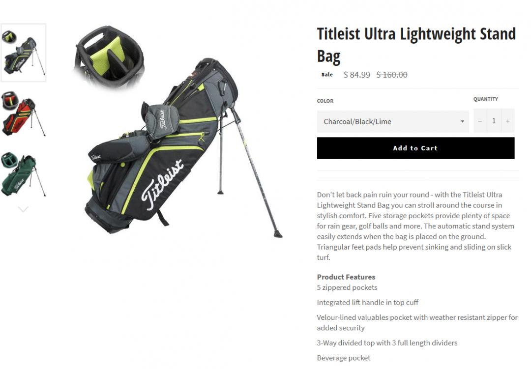 4. https://www.proozy.com/collections/discount-titleist-golf/products/titleist-single-strap-stand-golf-bag-1