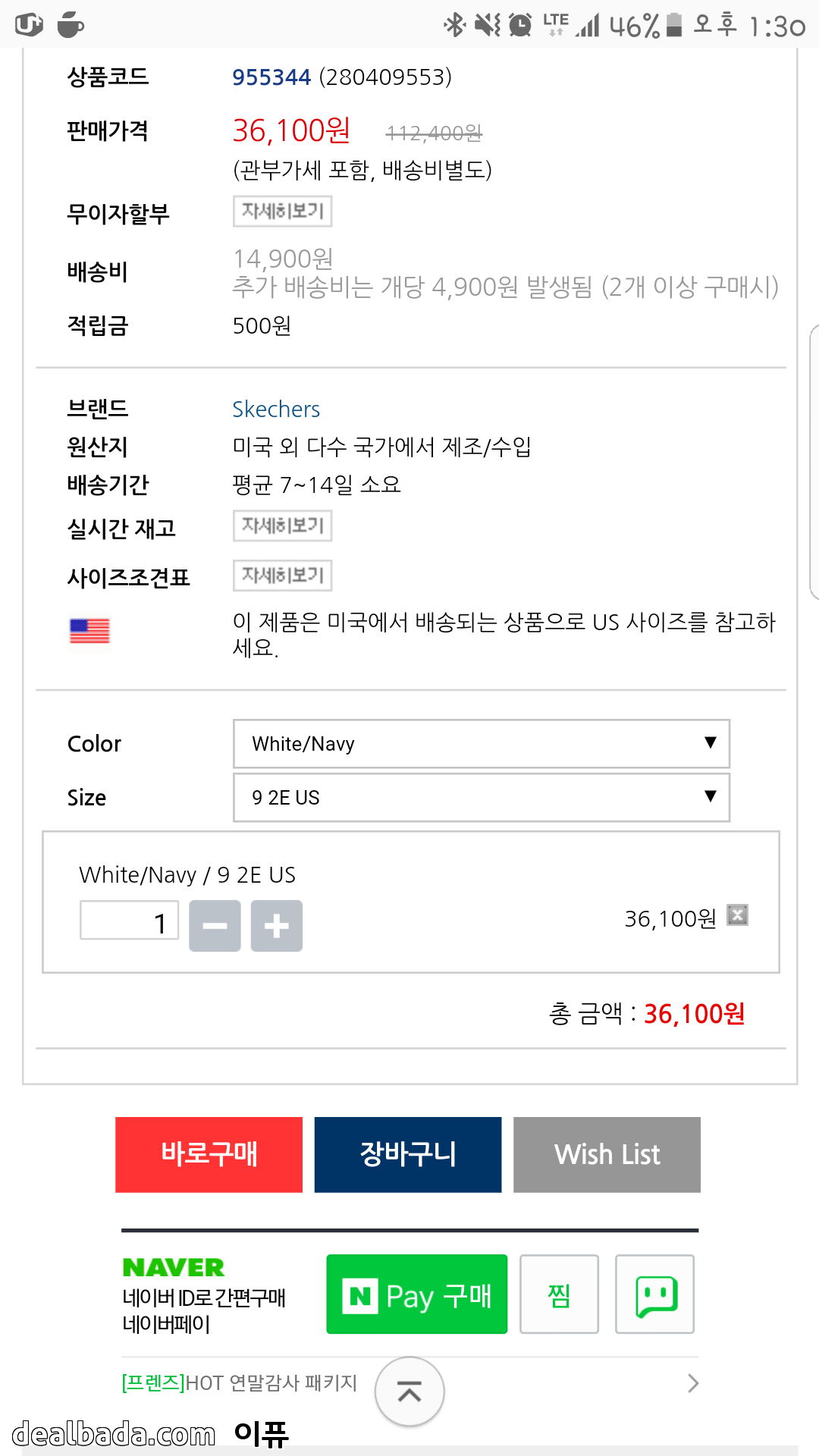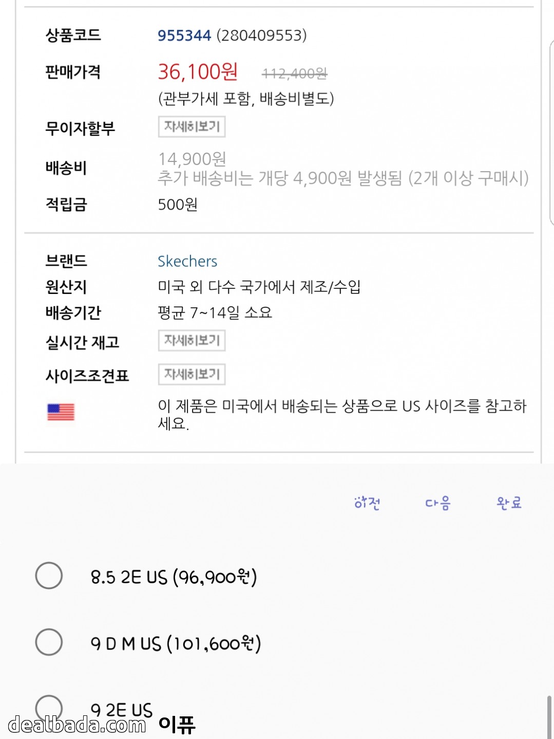 다만 아쉬운건 색상도 화이트 하나 사이즈도 9E2 요거 하나만 저렴하게 구매가 됩니다.