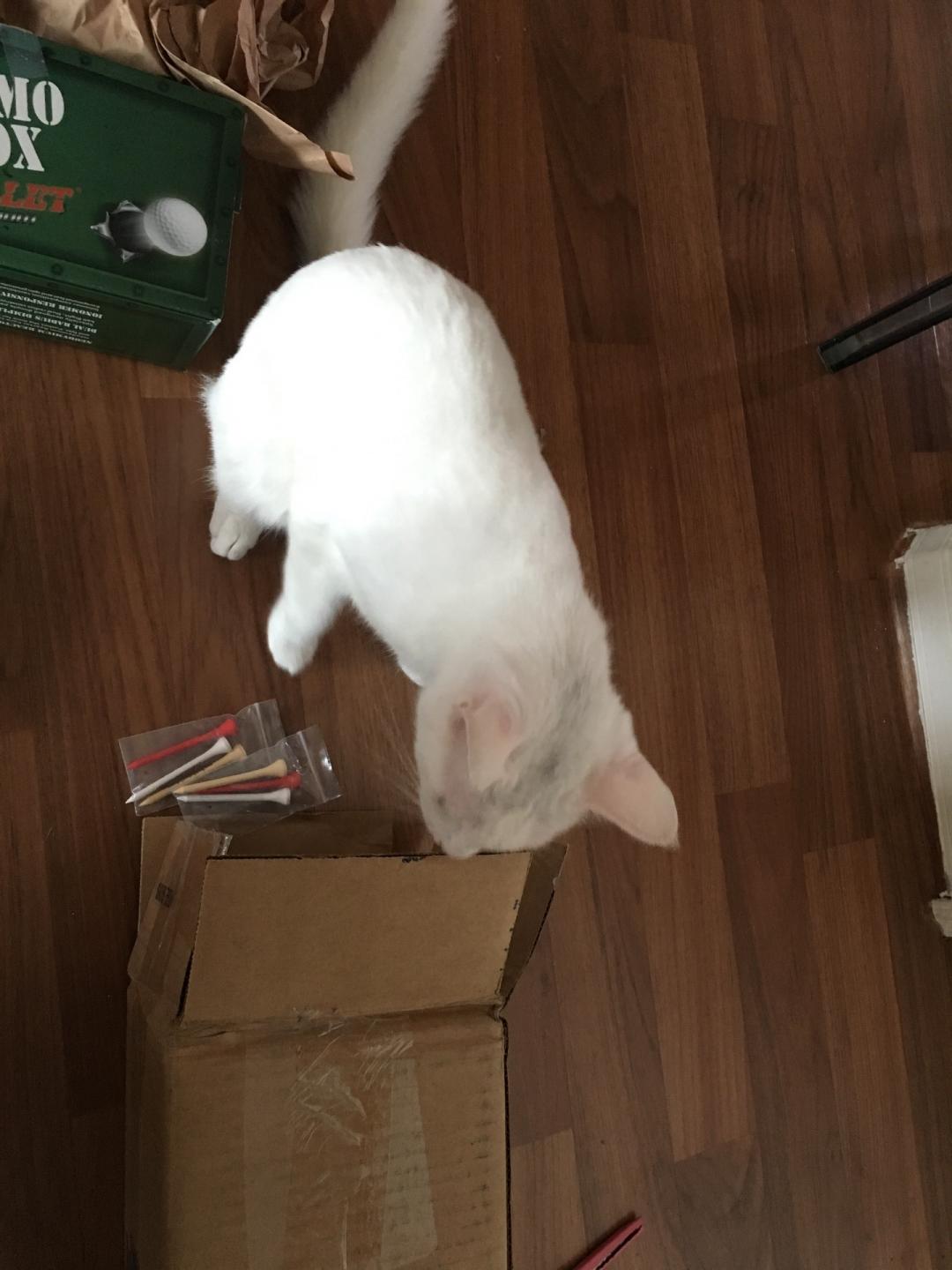 그보다 나중에 지른 소소한 물건이 먼저 왔는데 냥이가 저보다 먼저 검수를 시작하네요