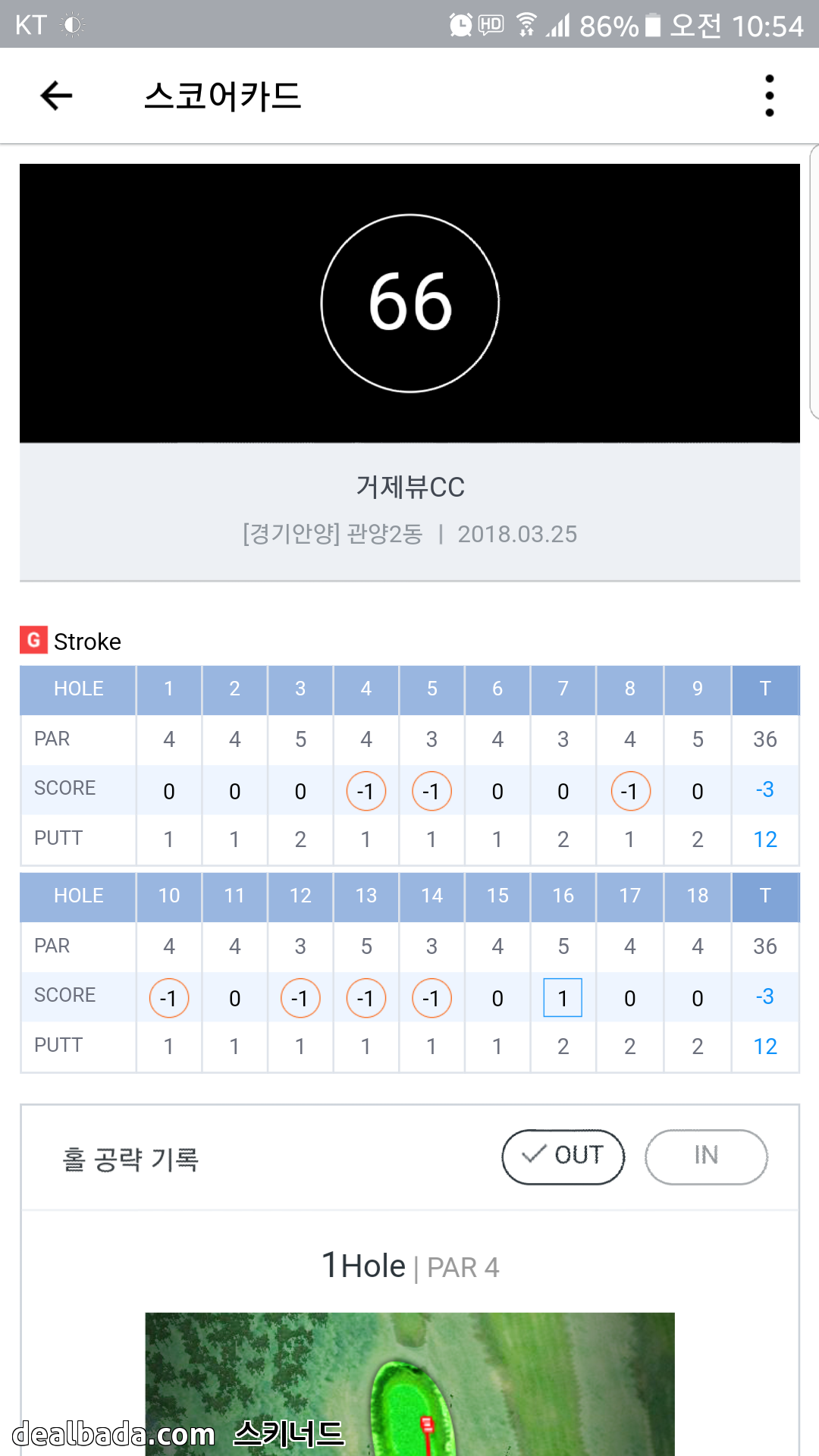 아이언 방향성이 좋아지니 퍼팅숫자가 확 줄어들었어요 ^^ |