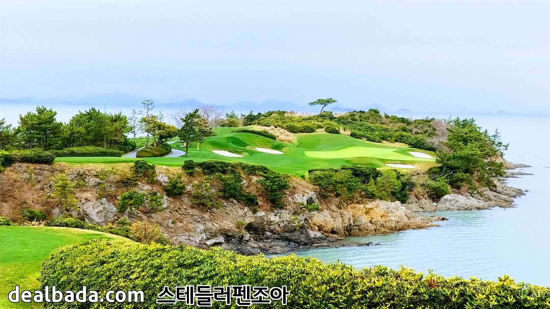 파인, 비치, 오시아노 코스가 있는데, 비치가 메인 코스입니다. 홈페이지에 들어가면 나오는 사진은 비치에 있는 파3홀 이고요, 시그니처 홀이라고 하네요. 오시아노는 오시아노 관광단지에 관광공사에서 만든 9홀짜리인데 지금은 파인비치에서 위탁운영 비슷하게 하고 있습니다. 그러니까 18홀짜리 회원제코스와 9홀짜리 퍼블릭 코스를 생각하시면 됩니다.