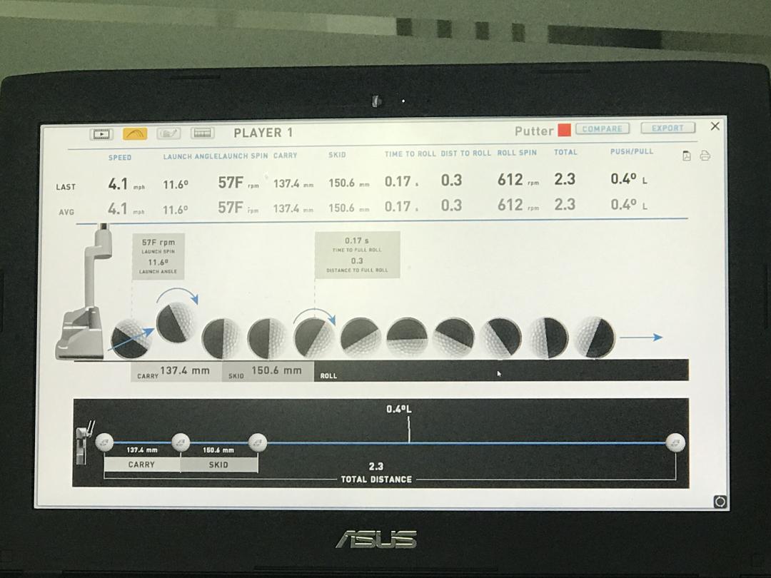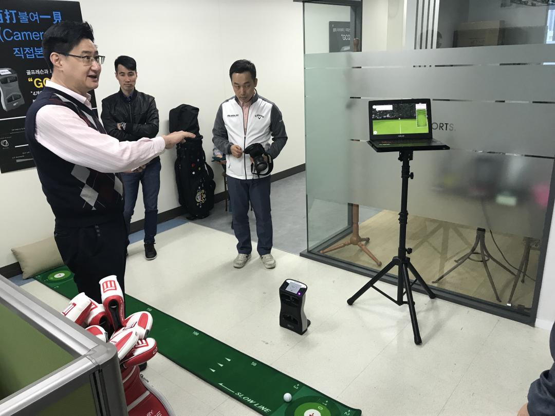 부사장님께서 친절히 설명 해주셨는데 벌써 치매가 시작될까말까하는 나이라 많이 까먹은 듯! 어쨋든 시장에서 가장 정확한 퍼팅 분석 시스템으로, 아마추어들이 특히 주의해야하는 상황은 스트로크 시 개인이 주로하는 head path, skid (미끄러져 가는 거리), launch (공을 시작할때 튀는지), time to roll(얼마만큼 나아가서 앞으로 구르기 시작 하는지 등등.. 생각보다 많았지만 단순하게 똑바로, 그리고 가능한 skid가 적게, 그리고 빠르게 앞으로 구르기에 집중.
