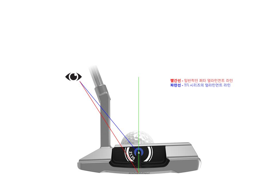요게 다른퍼터와는 달리 어드레스 정렬선이 위쪽 사선으로 되어 있습니다.