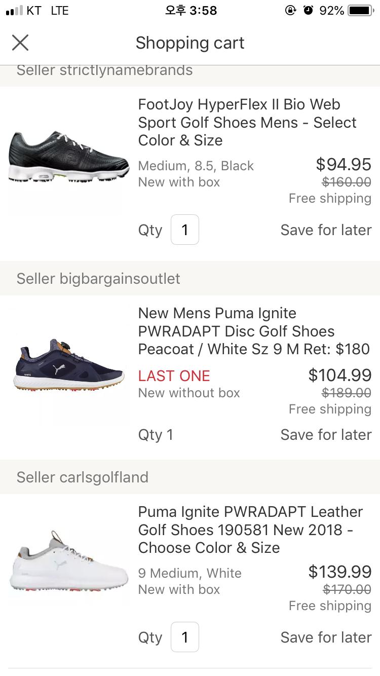 저는 에코 바이오옴G2, 아디다스 투어360, 나이키 베이퍼 이렇게 있네요 |