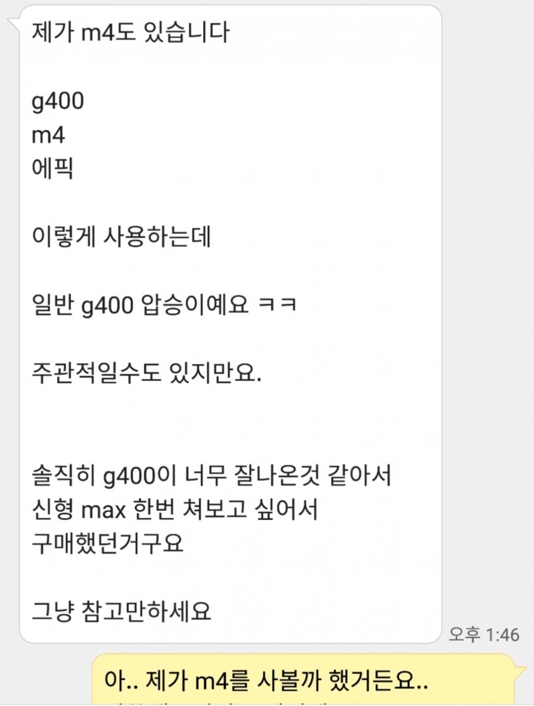하나더 이유는 예전 G400MAX를 사간 싱글친다던 아저씨의 G400이