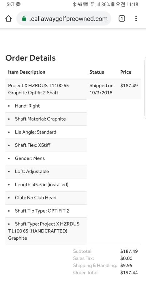 여기서 알게된 '해저드는우리것'회사의 T1100 샤프트를 협력사 세일할때 괜찮은 가격에 산것 같아서 기분이 좋숩니다...