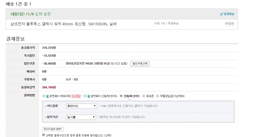 쿠폰 적용하면 아래 이미지처럼 264,700원입니다.