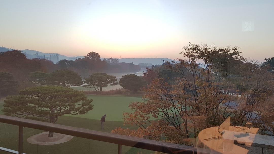 아침 해뜨는 시각에 만나 조식도 별도 룸에서 담소 나누면서 보내고, 18홀 걸으면서