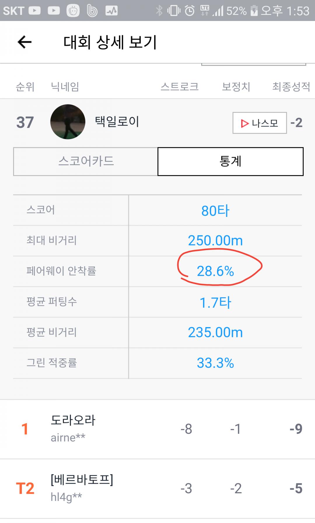그결과 페어웨이 안착율 28프로 ;;