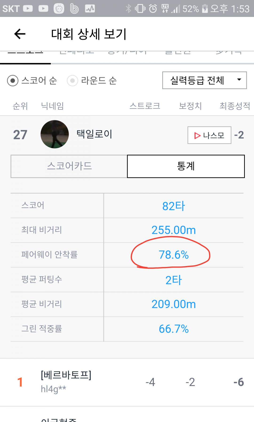 그결과 페어웨이 안착율 78프로 ;;