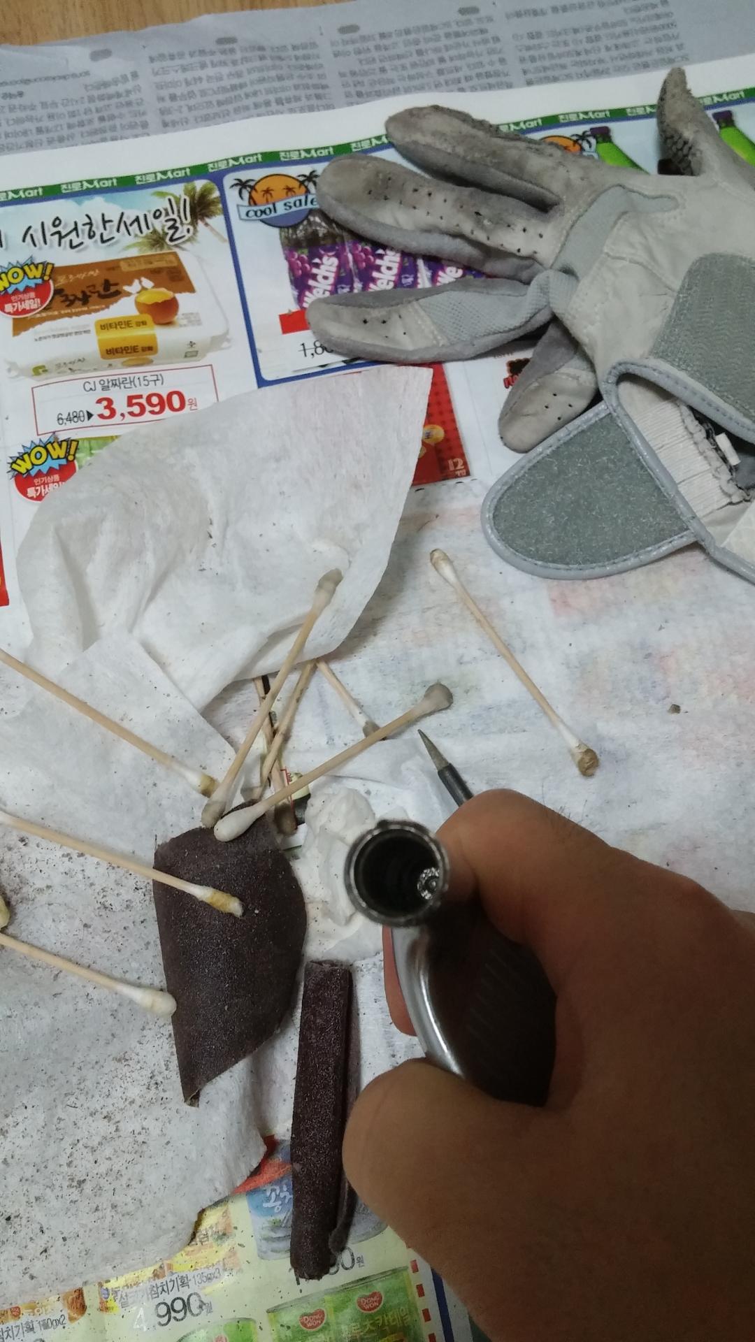 사포 가루등을 물로 씻어내고, 면봉을 넣어서 부드럽게 닦아주는 것으로 깨끗이 마무리 합니다.