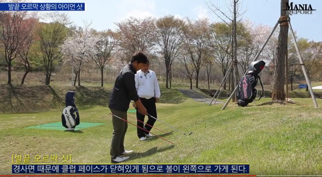 보편적으로 발끝 오르막은 뒷땅나기 힘듭니다. |