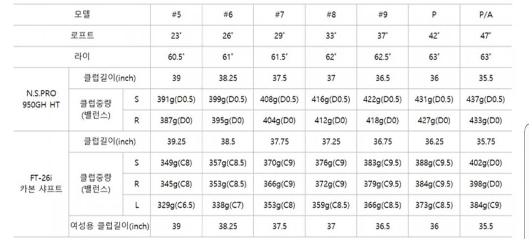 2번 구성(포틴 고객센터 추천): 5번~P/A(47도) + 웨지 (50, 54, 58)