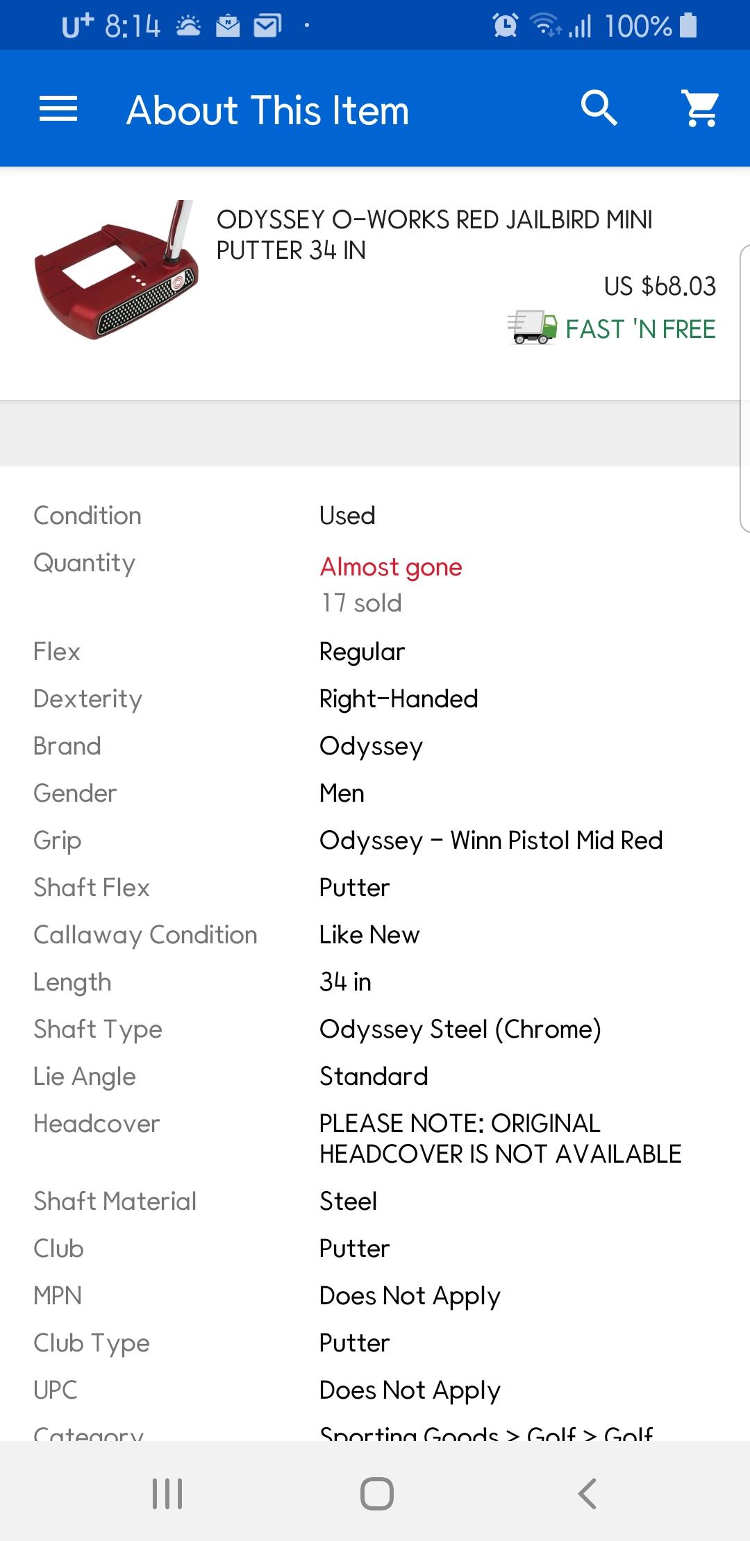 캘프 합배송은 퍼터헤드에 상처가 많이 생기니 좀 감안하셔야할듯 합니다.