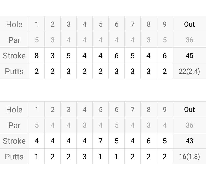 3년동안 100돌이었습니다. 저는 실제 스코어를 정확히 적는데 전체 통계 103타가 나오더군요.