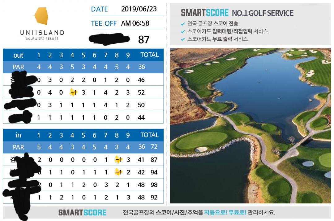 드라이버가 개망이라 스코어는 87개 기록했지만