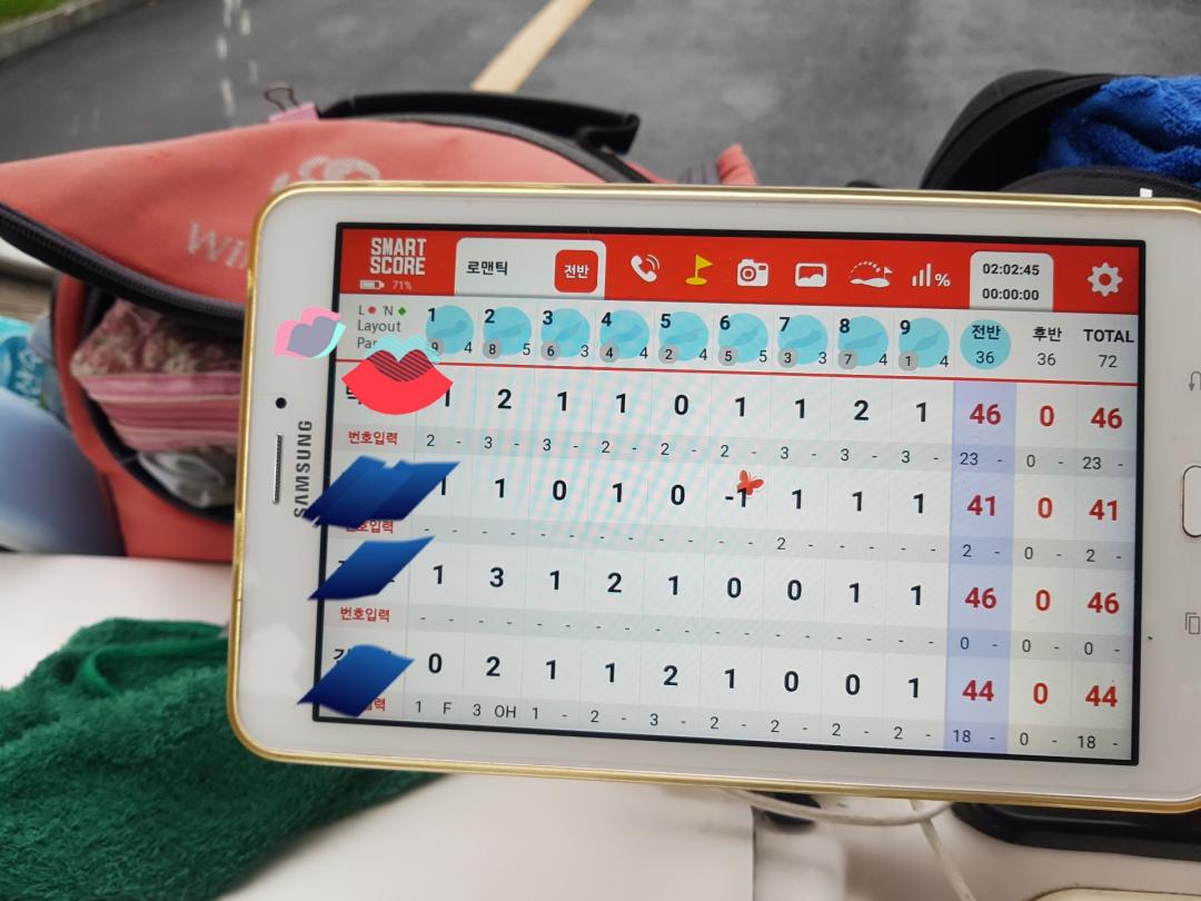암튼 여차저차해서 쓰리펏을 전반에 5개나 하는 바람에.. 46개치고...후반에 좀 적응이 되었는데 43개 쳐서 8자는 겨우 봤네요.