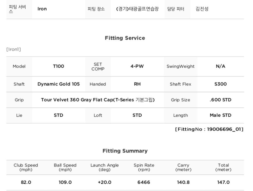 T100을 가지고 샤프트를 바꿔가면서 피팅을 했는데 제게는 다골105 가 잘 맞는다고 하네요..