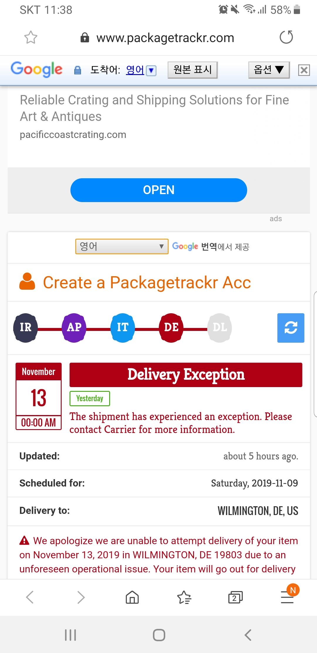 배대지주소를 예전걸로 했더니 will pickup 상태에서 delivery exception 상태로 변경되었고 핵직구 카톡과 1:1문의는 2틀이 넘도록 연락이 없네요. 기다리명 배대지에서 픽업을 하는지 아니면 제가 ups에 무언갈 해야하는지...