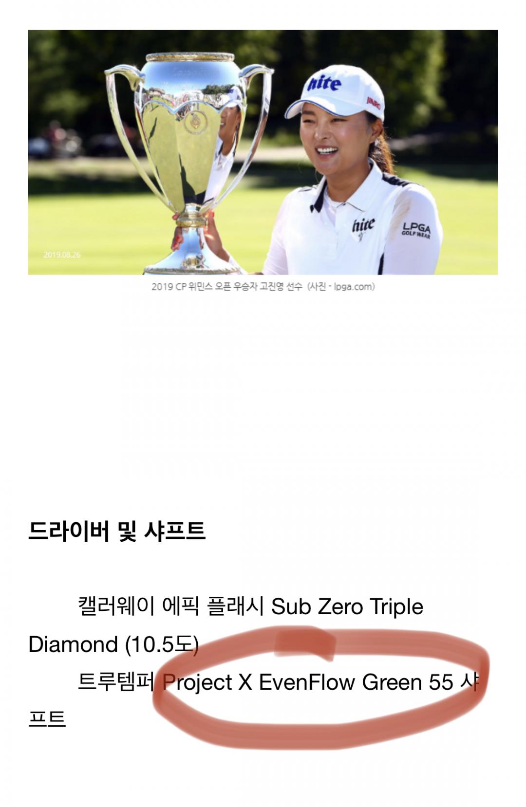 저는 제가 쓰려고 고진영 선수와 무게만 다른 바로 그 샤프트로 샀습니다. ㅎㅎ