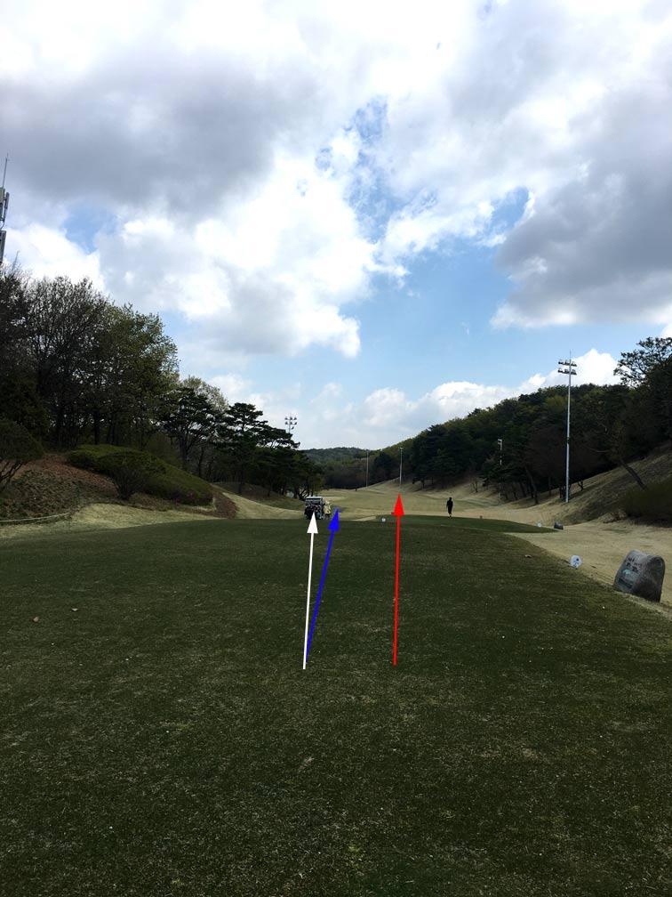 흰선 방향으로 서 있으면 동반자들이 제가 왼쪽으로 에이밍을 하고 섰다고 말하곤 하거든요. |