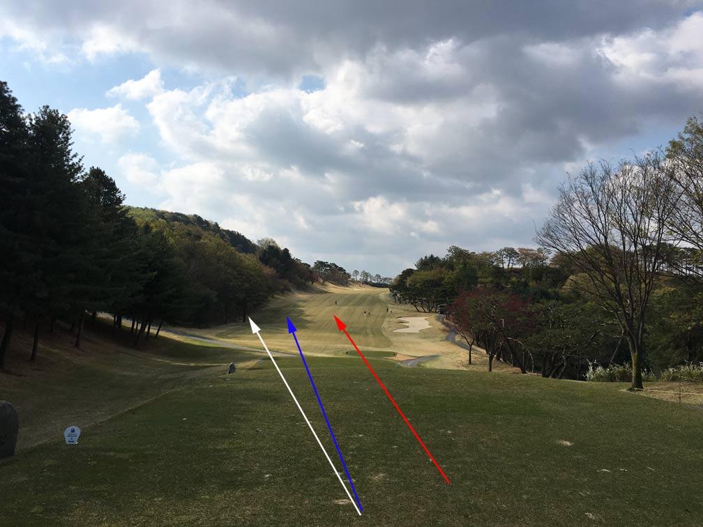 드라이버 기준으로 보면 대부분 몸은 낙하지점 페어웨이의 왼쪽 끝을 보게 됩니다.