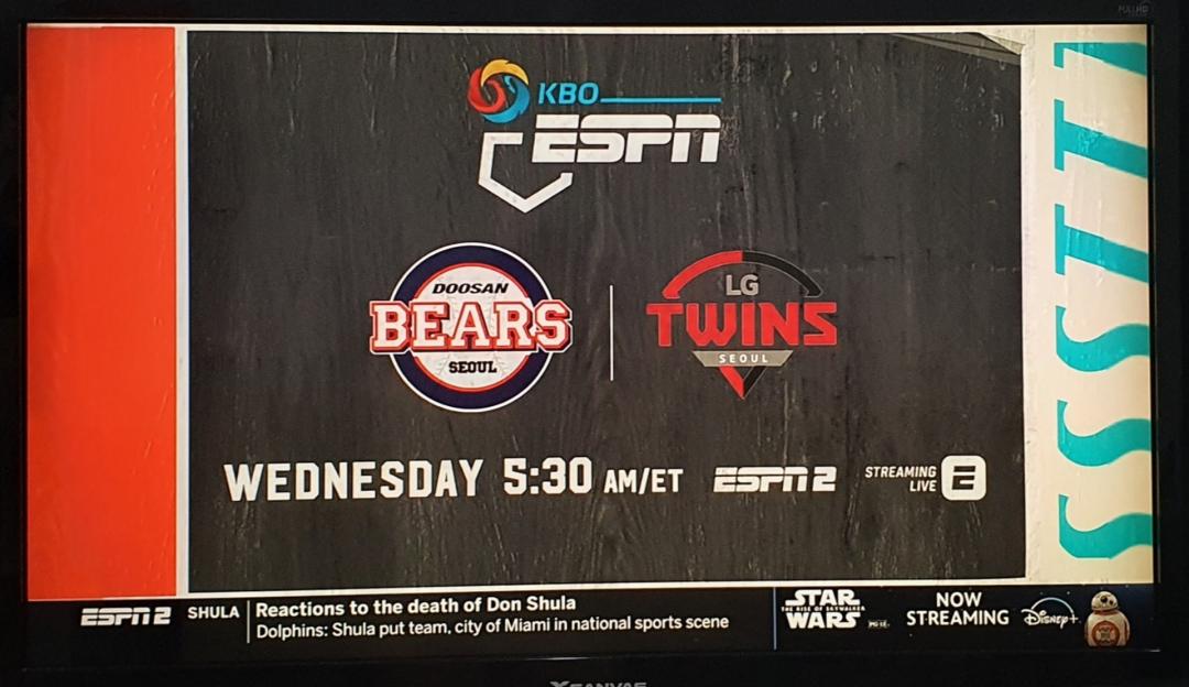 코로나를 온힘으로 이겨내고 KBO 경기가 ESPN에 생중계되니 자랑스럽네요.