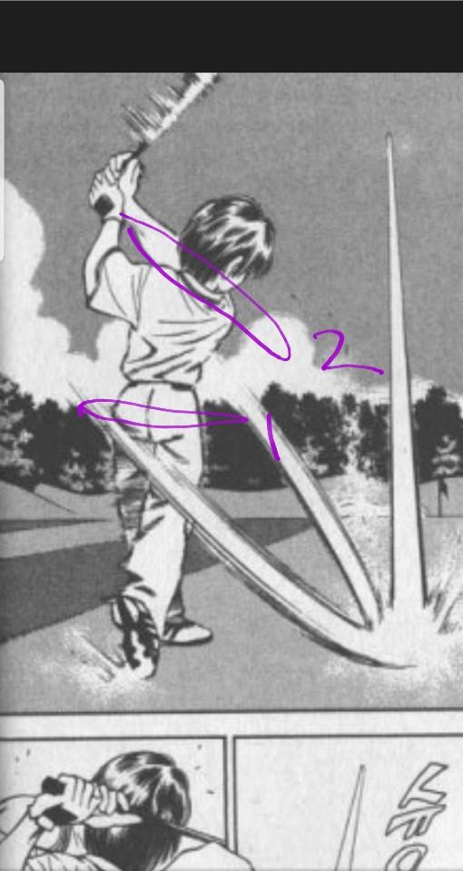 그림에서 2가 가파른 건 분명히 좋은 것이지만, 혹여라도 그 차이에만 집중해서 1을 수평하게 만들려고 한다면 크게 잘못된 생각입니다. 1도 되도록이면 2에 가깝게 많이 기울수록 샷에도 좋고 척추 건강에도 좋아요. 고관절 유연성이 그걸 허락 안 해서 문제지... |