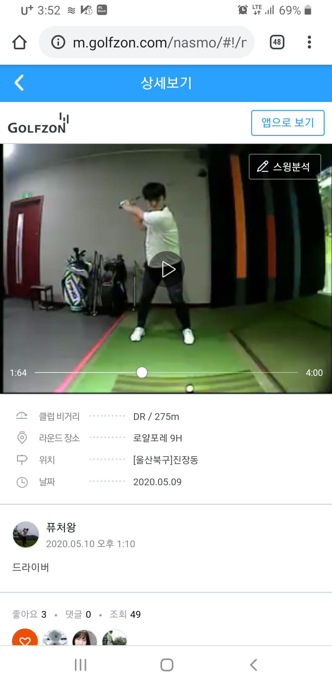 백스윙이 낮다며 좀더 올려보면 거리도 더 날꺼라곤 하던데