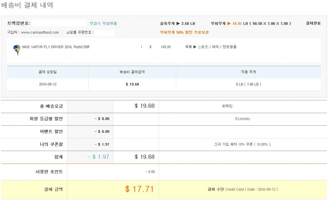 부피무게가 14.91lb 나오면서 50% 할인 프로모션을 해도 19.68 달러의 배송비가 나오네요 ㅠㅠ