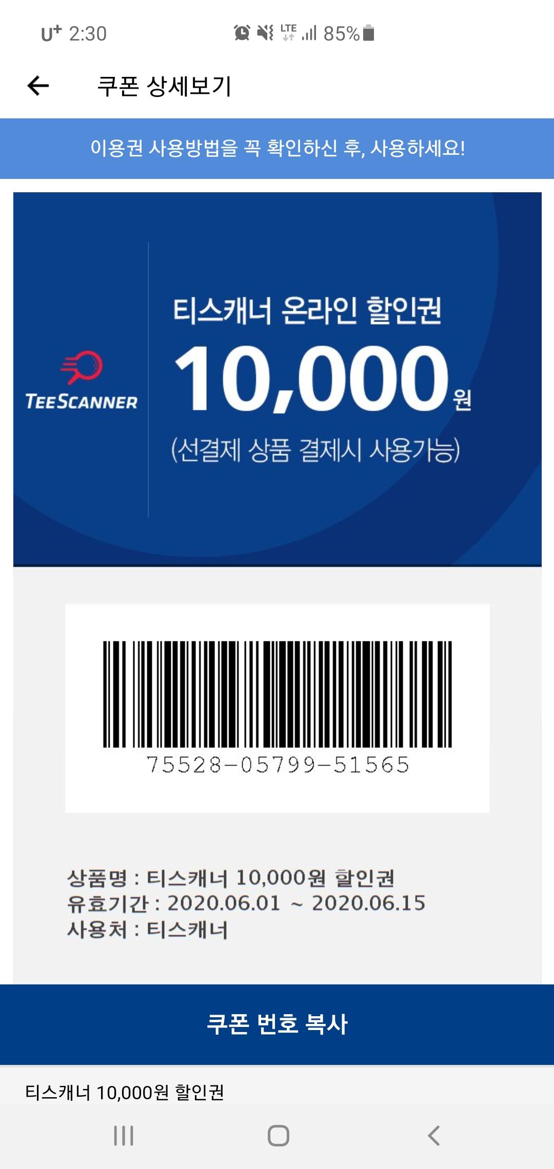 티스캐너 1만원할인권 15일까지 쓰세요 > 골프포럼