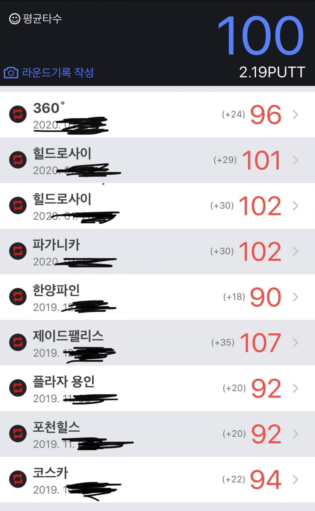 ㅇ 참고로 저는 5년넘게 제가 스코어를 따로 적는데... 80대 스코어는 2-5%, 90대 스코어는 30-40%, 100이 넘어가는 스코어는 50% 이상입니다. ㅋㅋ 물론 PGA 스타일입니다. 일년에 최소 30회 정도 라운드를 하고요. ㅎㅎ 디봇에서도 그대로 칩니다. 나무 밑에서 채 걸린다고 동반자가 잔디로 옮겨주면, 자동으로 벌타 하나 줍니다.