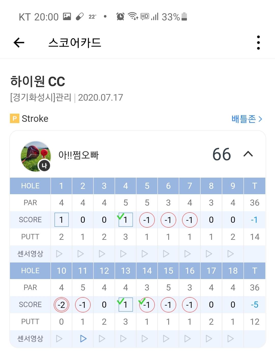 엄청나네요 ㅋㅋ 66타 부럽습니다 |