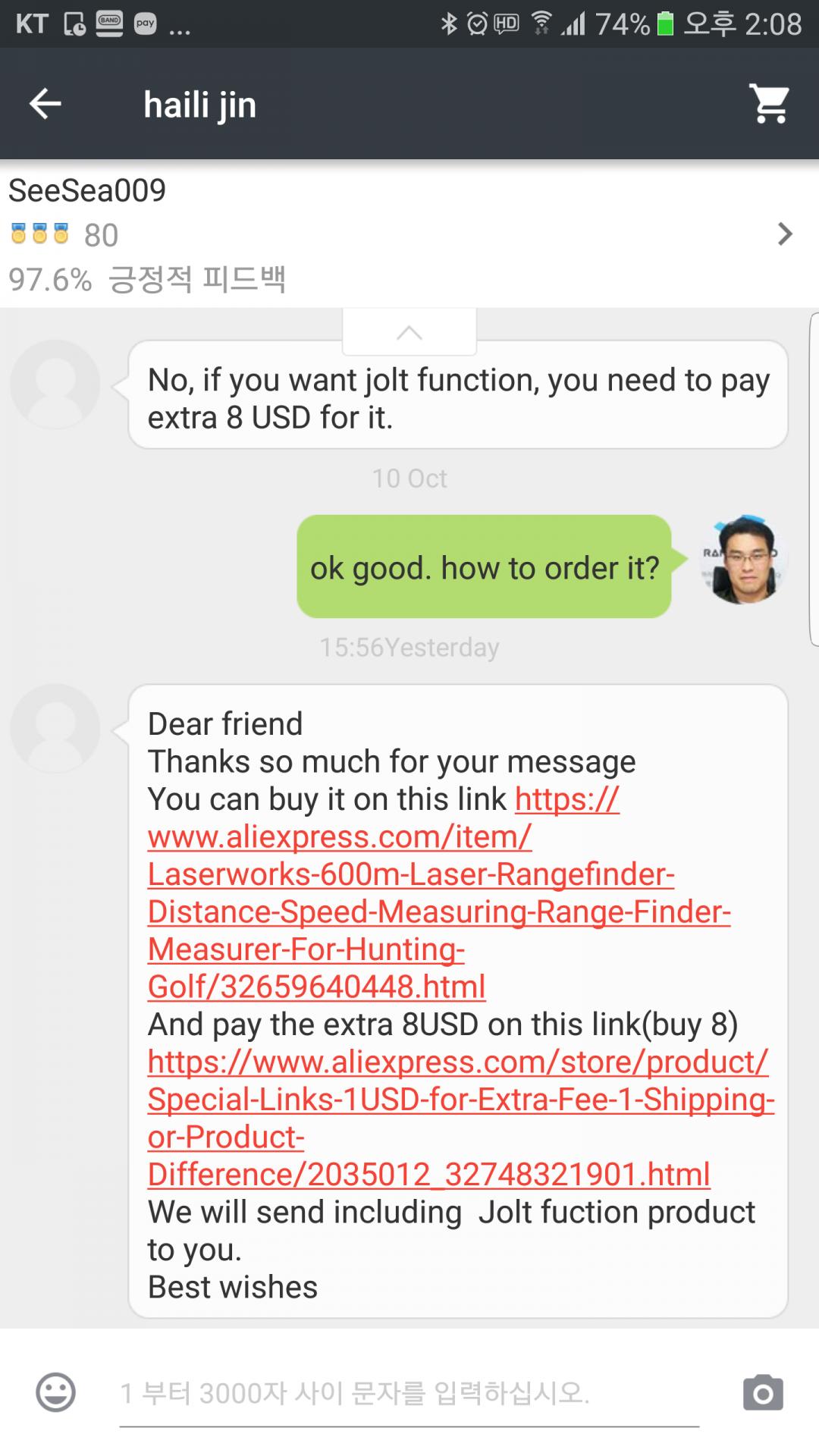 그래서 다른 판매자에게 문의하니 졸트 기능이 있는 버전은 8달러만 더 결제하면 보내 준다네여.