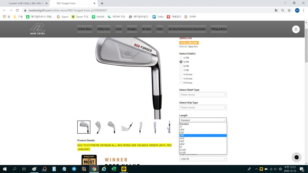 샤프트길이는 뉴레벨 홈페이지에 fitting advice? 보시면 지면부터 손까지 길이 & 키 테이블에서 구하실 수 있어요. 저는 172cm인데 1/2 커팅해서 주문 예정입니다ㅎ |