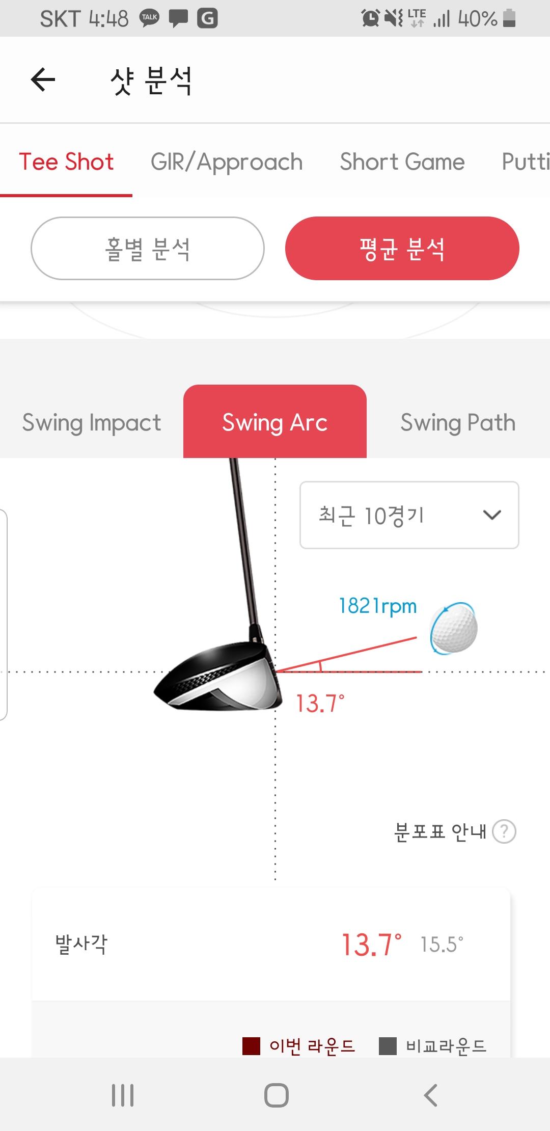 골프대디로 10게임 평균 볼스피드. 발사각. 백스핀. 스윙궤도 관련 정보 추가 첨부합니다.
