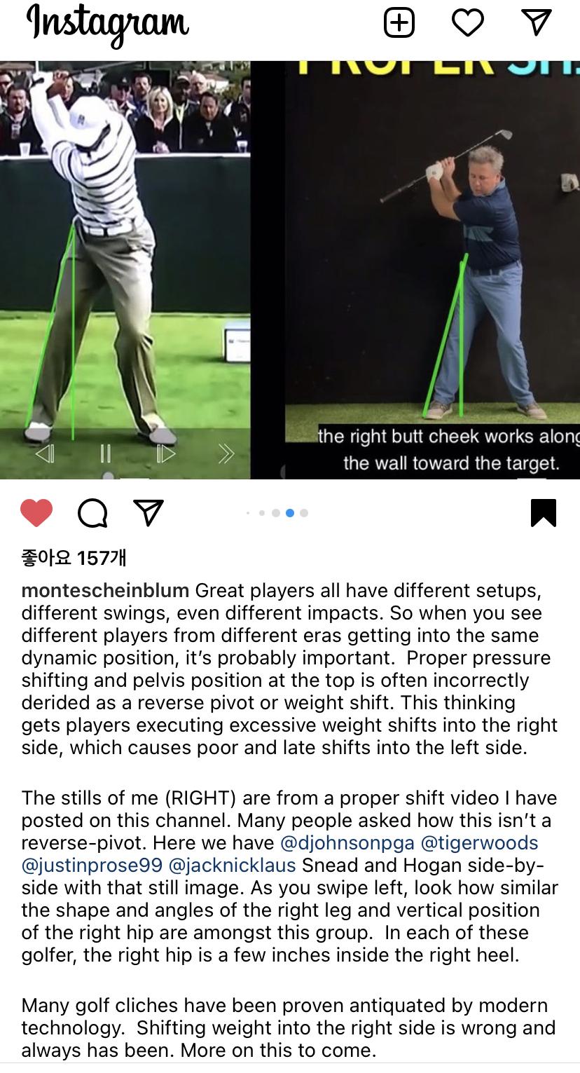 골프 관련 정보영상을 보면 의외로 유튜브보다 인스타그램에서 알짜배기 건지기 쉽습니다.