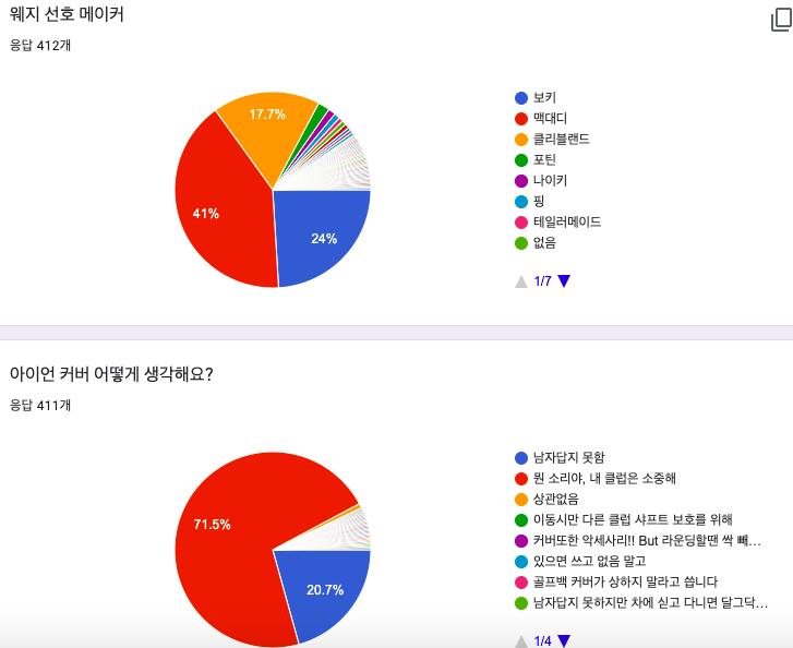 아이언 커버에 대한 질문에는 많은 분들이 선호도를 보여주셨네요.