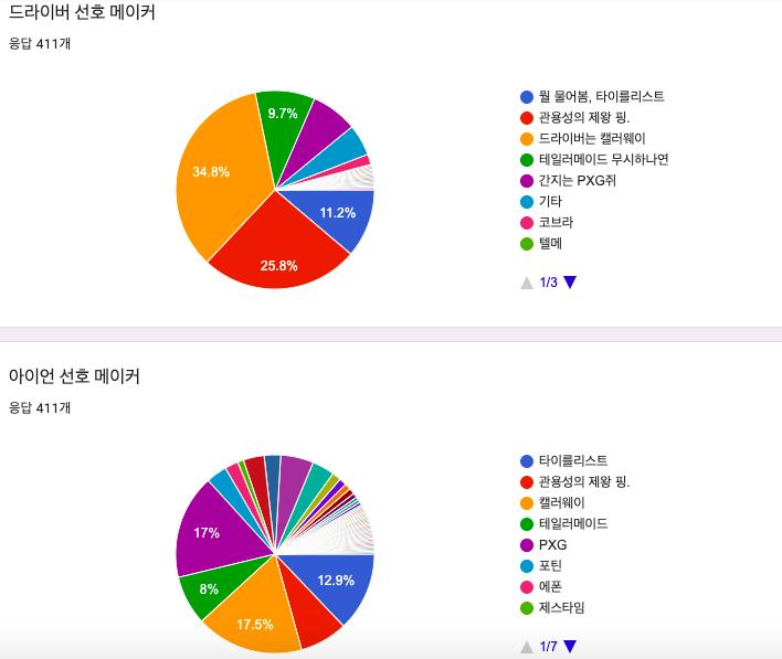 순위는 캘러웨이, 핑, 타이틀, 테일러메이드 순 이었습니다.